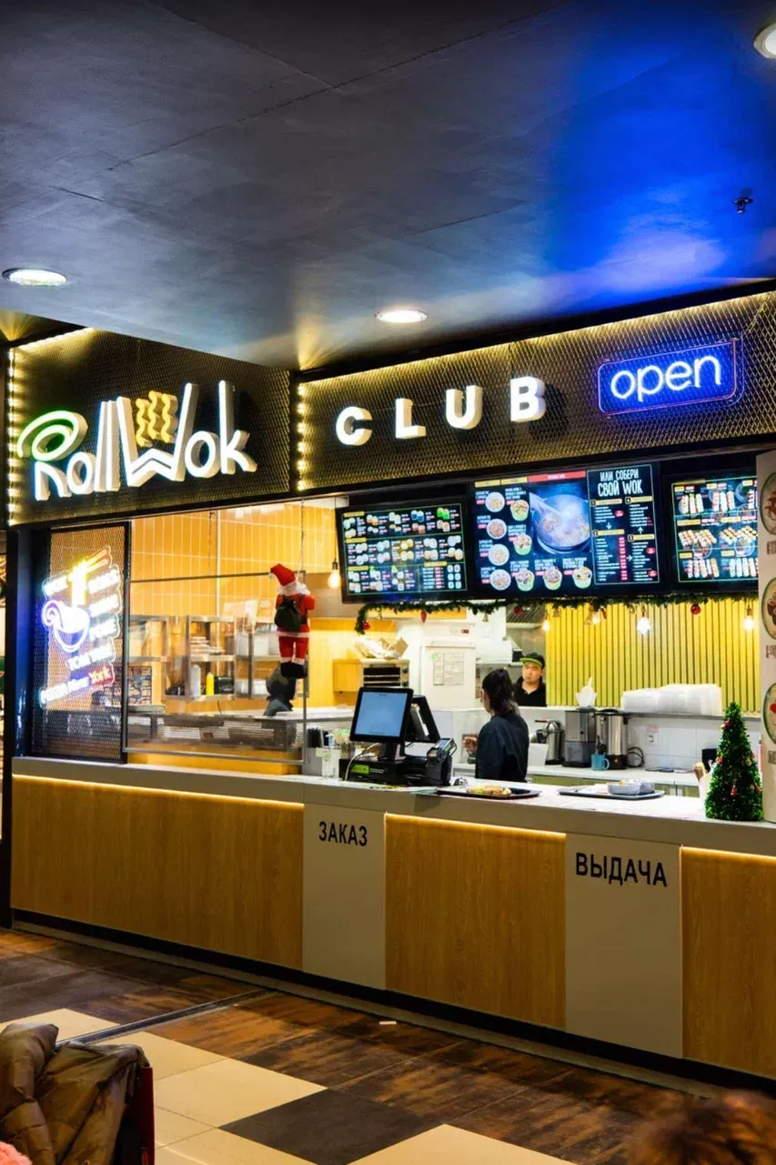 Брендирование торговых точек суши-бара «Roll Wok Club» в Сунже