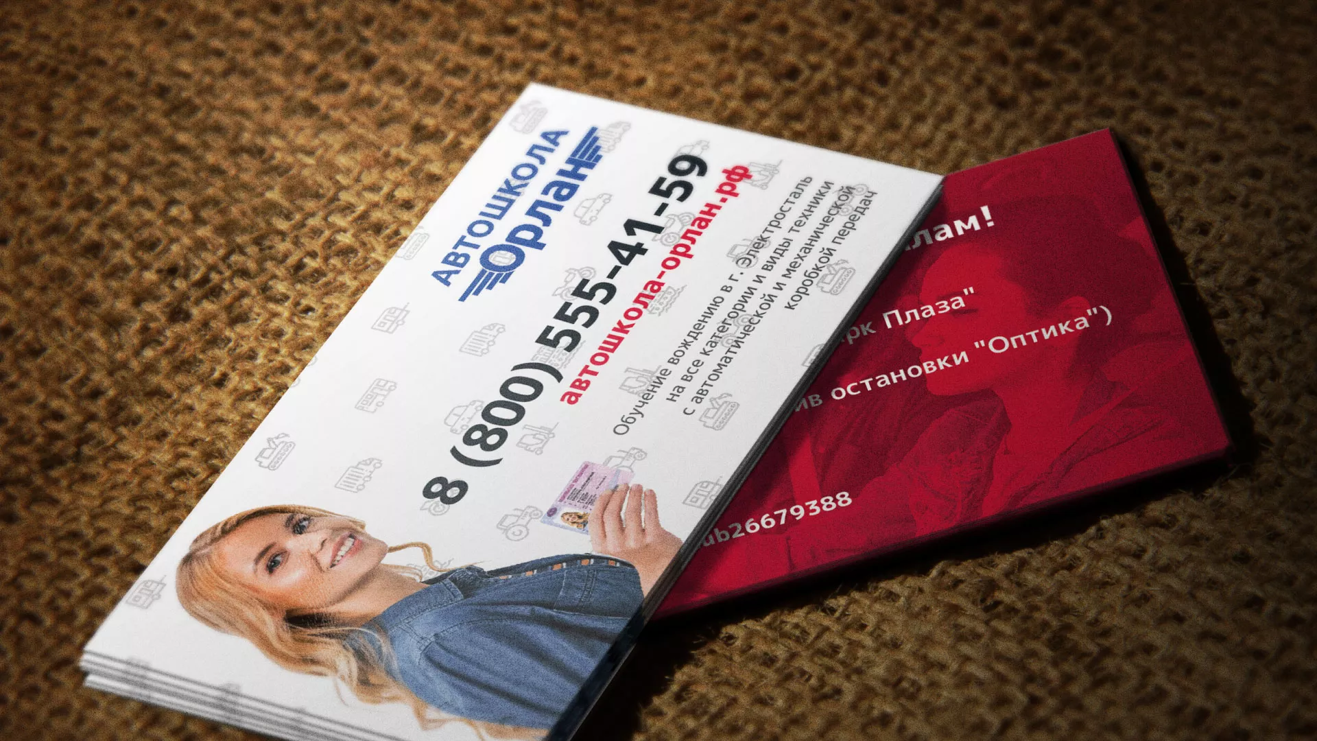 Разработка рекламных визиток автошколы «Орлан» в Сунже