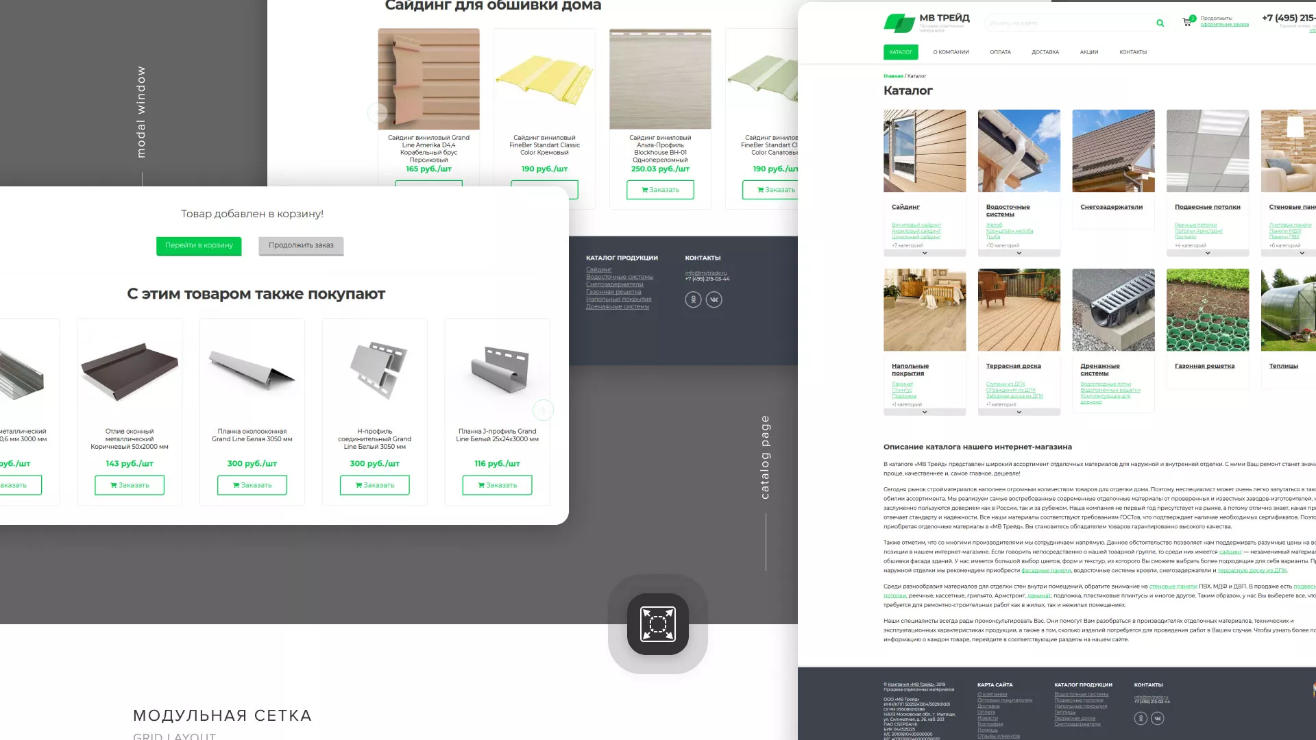 Компания «МВ Трейд» осуществляет продажу сайдинга и отделочных материалов через интернет со своих складов в Сунже. За 17 лет компания зарекомендовала себя надежным поставщиком. Товары реализуются как оптом, так и в розницу.