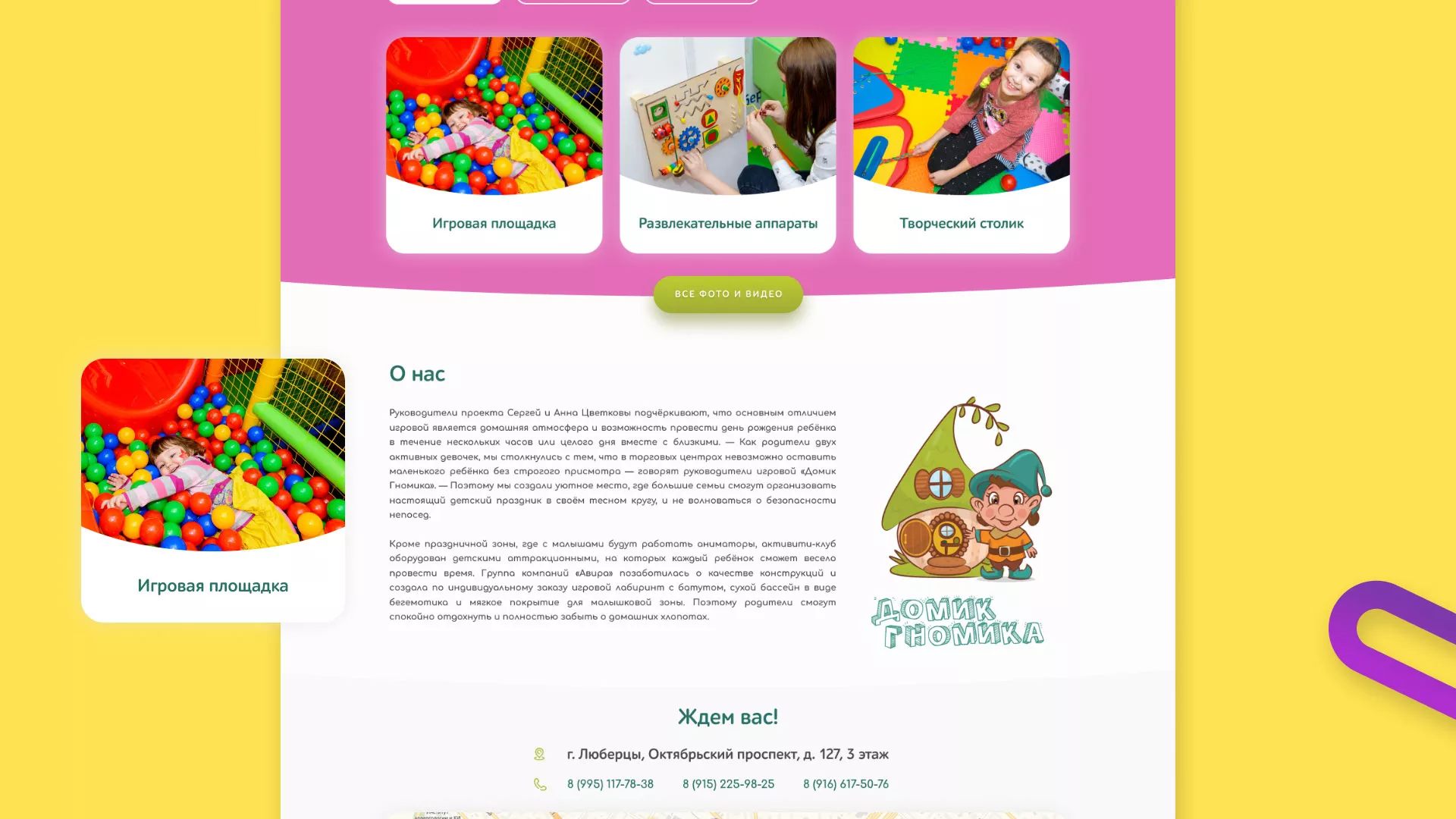— Как родители двух активных девочек, мы столкнулись с тем, что в торговых центрах невозможно оставить маленького ребёнка без строгого присмотра — говорят руководители игровой «Домик Гномика» в Сунже.