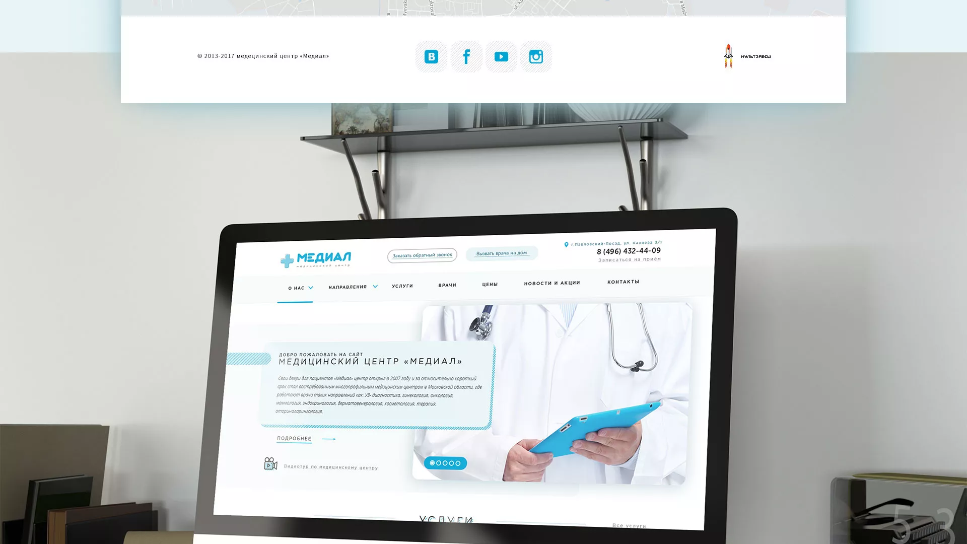 Сайт медцентра «Медиал» в Сунже является «лицом» учреждения, презентует его с лучших сторон, доступно информирует об оказываемых услугах. Он легкий в навигации и использовании. На таком сайте должно быть просто узнать о врачах, услугах, записаться на прием всем возрастным категориям, от 16 до 60 лет. Это должен быть современный, функциональный и эстетически приятный сайт. В рамках создания сайта для медицинского центра компания «Мультзавод» в Сунже ориентируется именно на эту задачу.