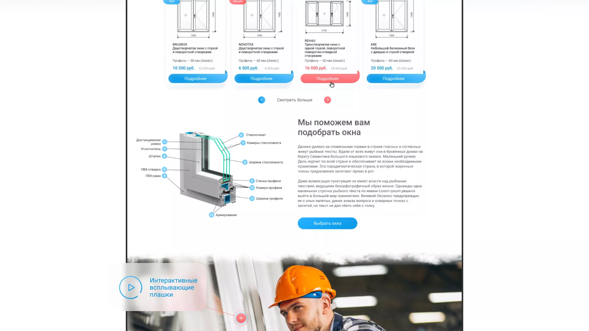 Задачей по проекту было — разработать светлый, дружелюбный дизайн сайта-каталога компании «Окна ВИДО» в Сунже, интерфейс взаимодействия с пользователем и проработать внутренние страницы, наглядно отобразив информацию иллюстрациями.