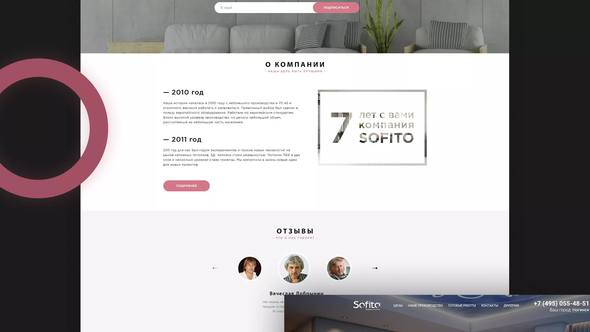 Достояние компании «Софито» — это люди. Фабрика потолков «Софито» — это команда профессионалов, проверенная временем! На счету компании многие эксклюзивные реализованные проекты в Сунже с использованием натяжных потолков и других интерьерных решений.